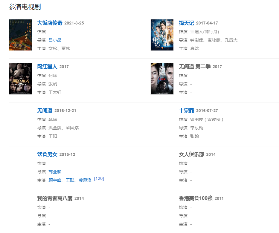 代表作品:哪吒、無(wú)間道、甜蜜蜜、三岔口、何方神圣、雙城故事、殺手之王、五福星撞鬼、臥虎、福星闖江湖、神通鄉(xiāng)巴佬、獎(jiǎng)門(mén)人